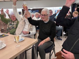 Daarna konden we ons glas heffen en klinken op een gezellig en sportief 2026. En bleek dat we ook nog een jarige in ons midden hadden! We wensen haar toe dat ze nog vele jaren in goede gezondheid bij ons speelt.